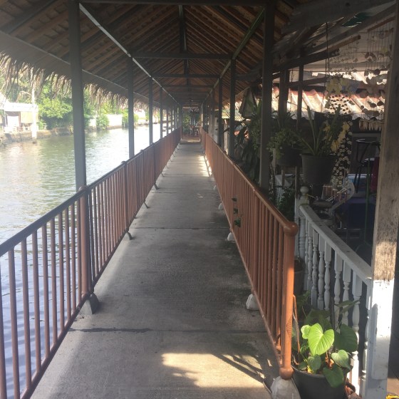 We saw many monks dressed in bright orange as they went about their practices. We saw many golden Buddha statues and one large statue of a former abbot, but my favorite was the 5th floor glass statue and the ceiling. Airy and brilliant with color, you can also walk the balcony’s to get a great view of the city and the various canals.