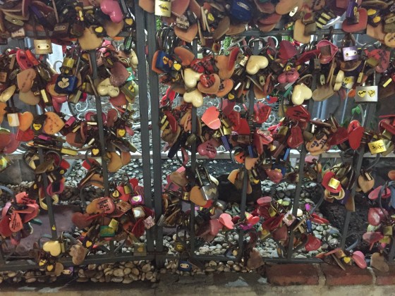 On our way walking back out to the street, we saw this amazing wall of locks, very similar to ones hanging on the Pont des Arms in Paris. We walked all the way around and it was very charming.