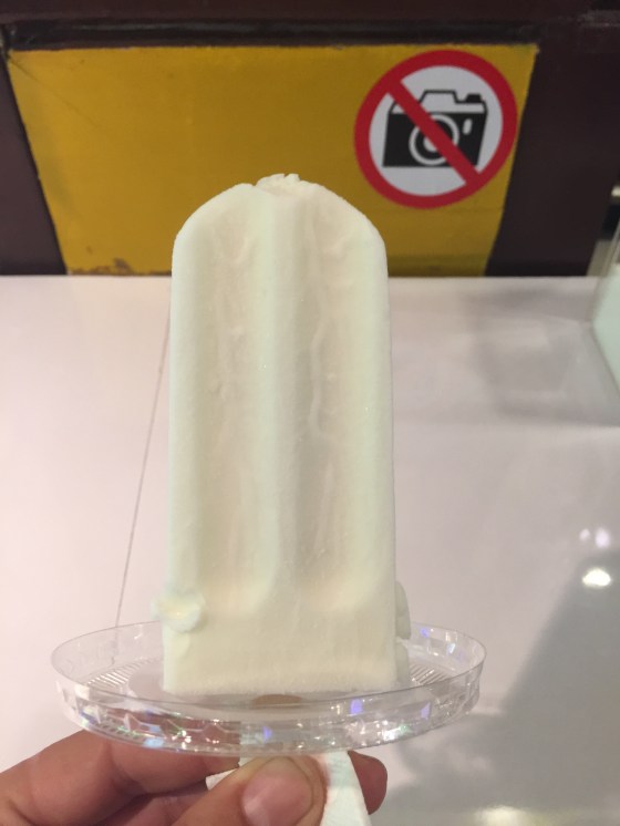 We walked around the outdoor and indoor stalls and explored what they had to offer. We wanted something sweet to finish off our dinner, so we stopped by a dessert place, where I got a coconut popsicle and Annie got the mango dipped in chocolate with almonds. The parents got a strawberry toast.