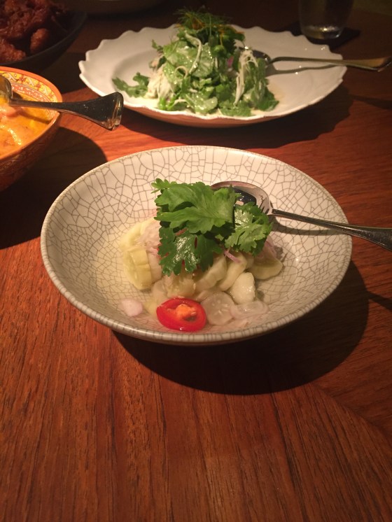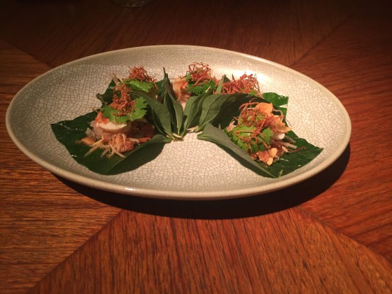 Annie and I walked back to our hotel where we freshened up for an evening out. We called an Uber for all four of us and off we went to Nahm, which is in the Como Metropolitan Hotel a few miles from our hotel. Nahm had recently been named the 5th out of the 50 best restaurants in all of Asia by the S. Pelligrino.