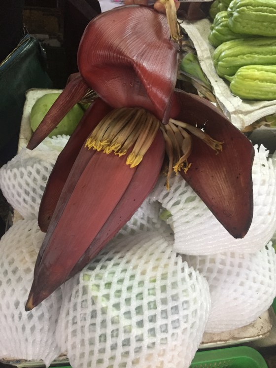 We saw a banana flower, which as 10-15 mini banana seedling hiding behind each leaf. They are often eaten as a palate cleanser after greasy food, although Annie tried them and didn’t care for them. We also saw baby watermelon, which has a thick skin of multiple inches and is often cooked and used in curry’s similar to potatoes.