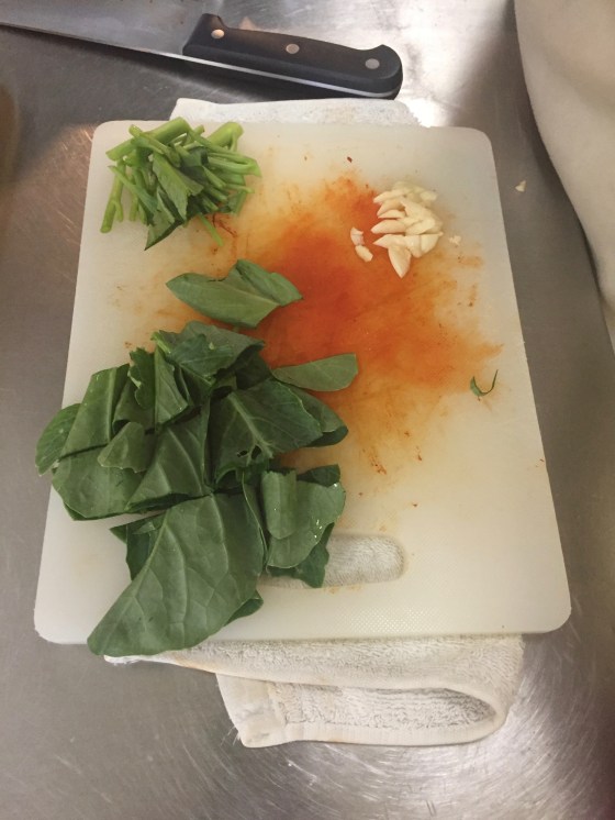 We started with chopping up everything, and from there it all went into the pan with a little bit of oil. We had to keep stirring it in order to prevent it from sticking to the sides of the wok.
