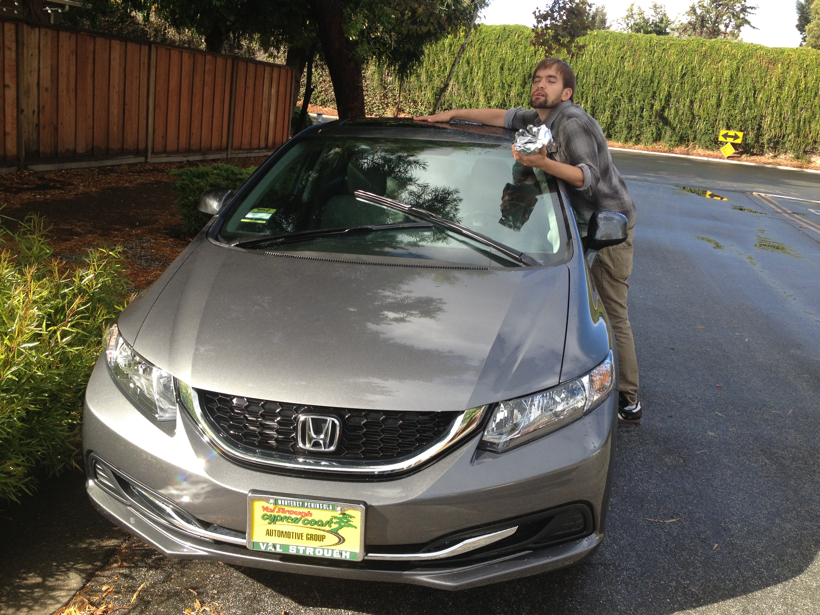 Robert came over and showed off his swanky new car! Its a 2013 Honda Civic. It’s beautiful! It was pouring for a while so we settled on making some carrot-cake in celebration of his new wheels.