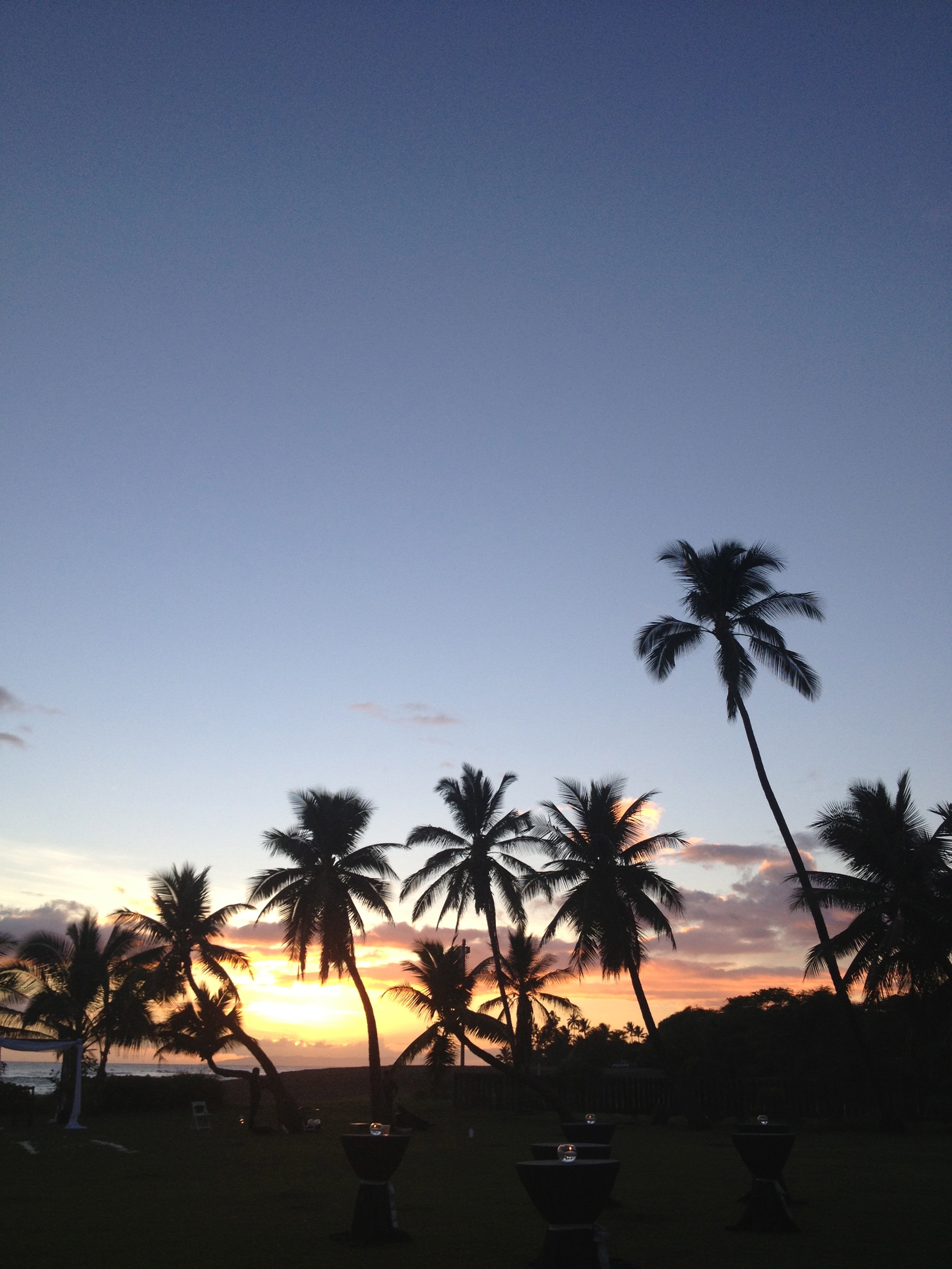 The wedding was unbelievably gorgeous. The bride looked stunning, the decorations were simple but elegant, and the food delicious. The sunset just after the ceremony was the crowning jewel. It rained during dinner, and it was delightful to listen to the rain drumming on the tents.