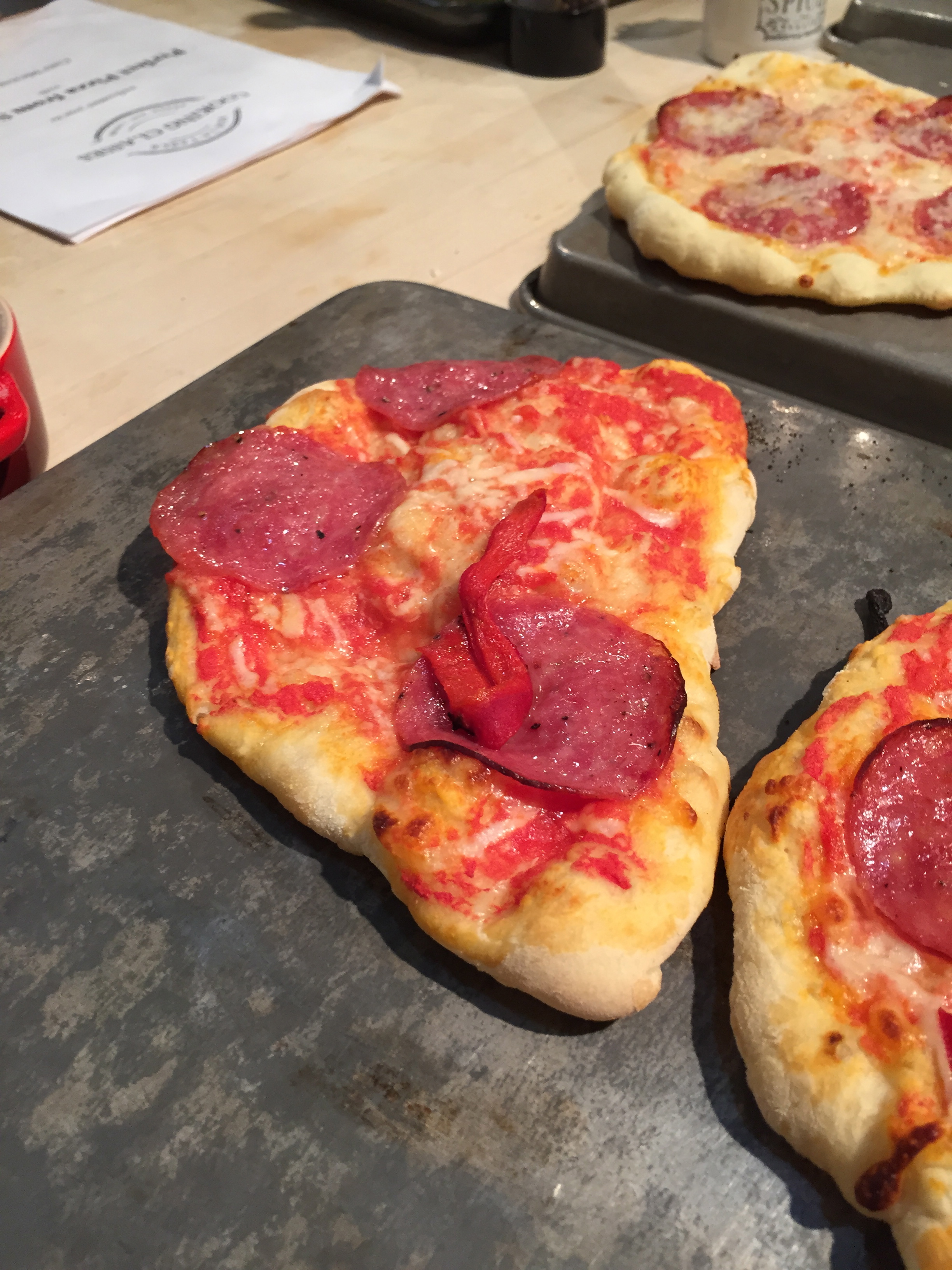 Although my pizza’s weren’t the typical round shape, they were delicious. The class was small (11 people), but I think it was a perfect size to ask questions and share the cooking spaces.