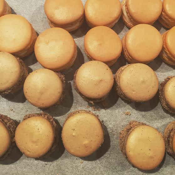 We make two delicious kinds: a candied ginger & apricot macaron, and a hazelnut Nutella macaron. The Nutella macaron was hands down my favorite flavor I have ever had! Although, the peanut butter & jelly ones that I had last summer are a close second!