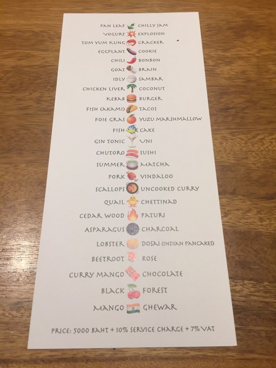 Our menu was pictured with emoji’s, which described only one small element of each tasting.