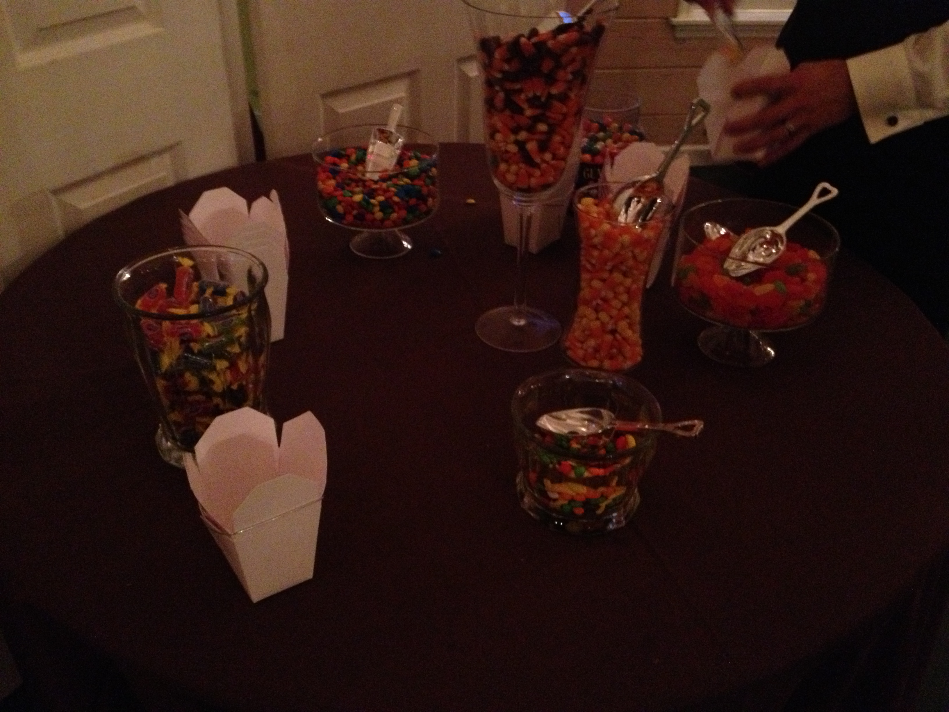 Michael is a big fan of candy, and so they had a “grooms cake” for him which was this candy take-out bar with to go cartons. It was pretty cute and tasty! They had a good variety of candy.